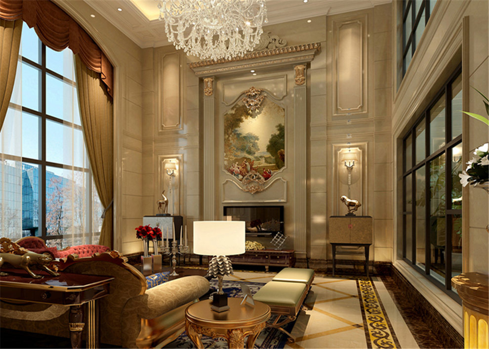 挑高客廳注重視覺(jué)之美,最好選擇靠大面窗的位置,設(shè)計(jì)上營(yíng)造客廳縱深開(kāi)闊的大氣美感,其次再考慮功能性設(shè)計(jì)。