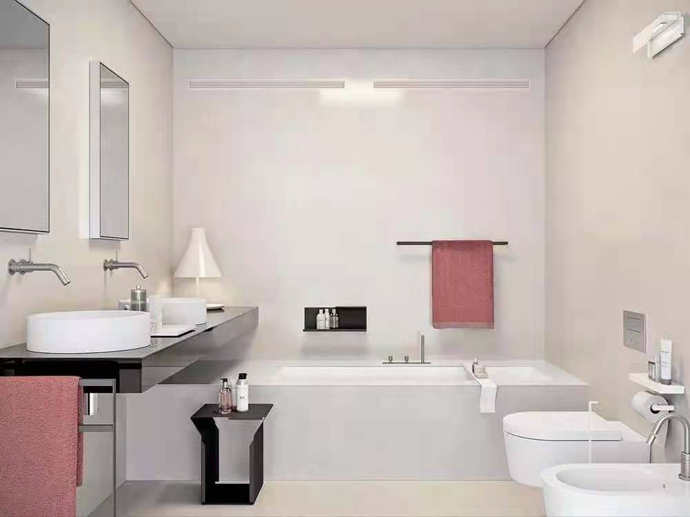 一、首先要將墻面的磚體貼滿,這樣能有效防御濕氣的侵蝕,達(dá)到保衛(wèi)墻壁防水層的功用,同時還能保持長久的整潔與美觀,若是浴室中有吊頂,那么吊頂處也要用瓷磚鋪滿,這樣才能更好的保護墻壁。