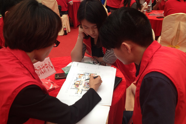 用心裝】迎春盛典,于馬會(huì)家居中庭隆重舉行?;顒?dòng)期間名匠裝飾(集團(tuán))總設(shè)計(jì)師康永鮮領(lǐng)銜的數(shù)十位金牌設(shè)計(jì)師團(tuán)隊(duì)發(fā)布2015年設(shè)計(jì)新風(fēng)尚,為羊城客戶現(xiàn)場解析最新樓盤戶型,并針對(duì)戶型結(jié)構(gòu)和具體功能需求,提供最出色的設(shè)計(jì)方案!
