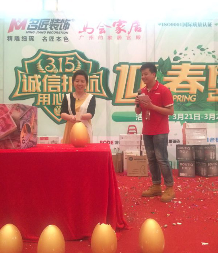 為了感謝羊城客戶對(duì)名匠裝飾20多年來的一貫支持,現(xiàn)場還安排砸金蛋、抽大獎(jiǎng)以及迎春抓錢大行動(dòng)多重大禮包回饋業(yè)主。取得了豐碩的業(yè)績回報(bào)和提升品牌的美譽(yù)度,打響了2015年內(nèi)部升級(jí)的第一搶?。?!